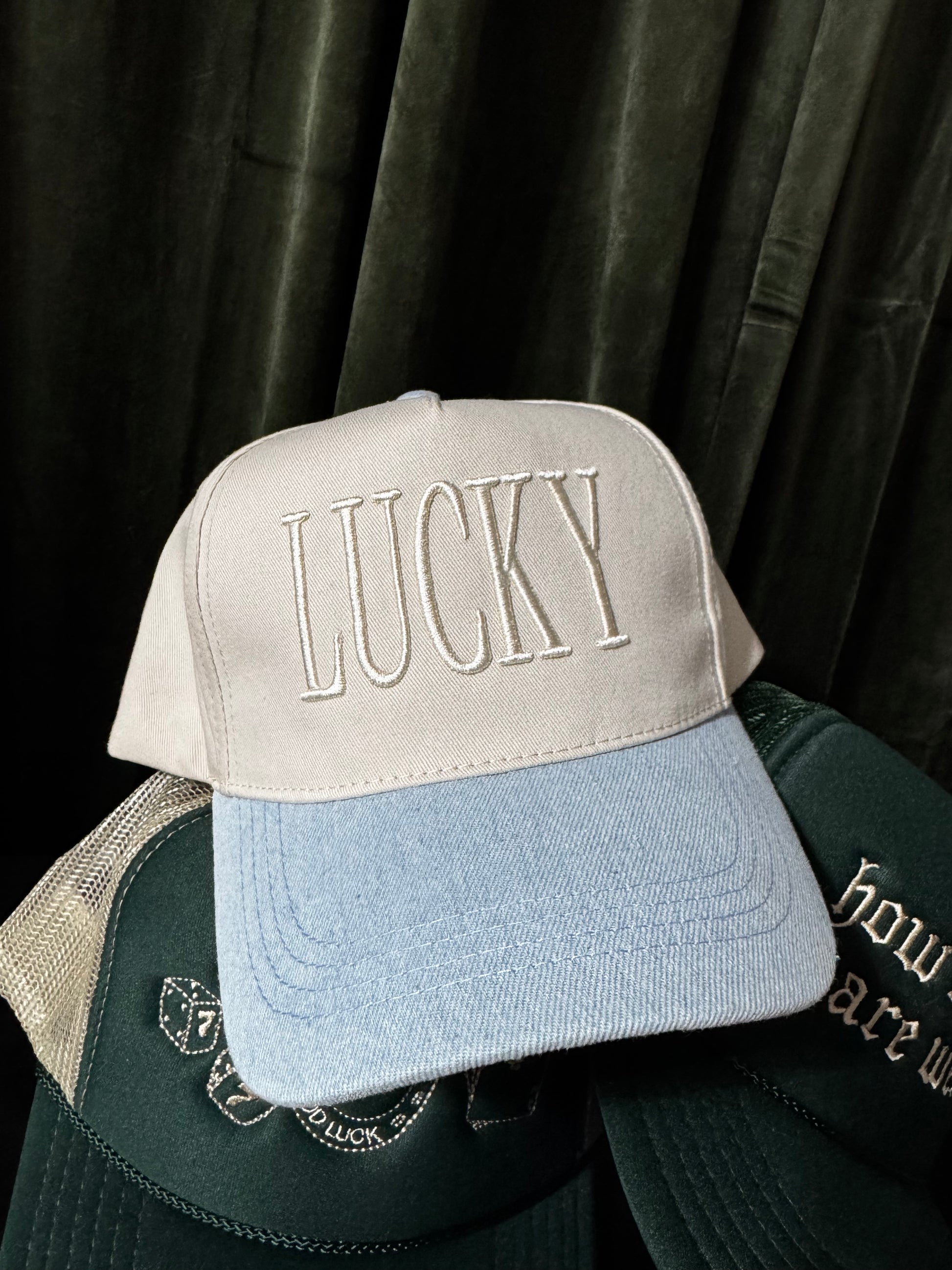 A soft neutral trucker hat with raised tonal embroidery for a subtle but standout look. Designed to be easy, wearable, and effortlessly cute.
